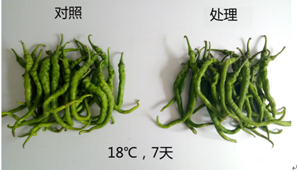 9、尖椒:對(duì)照:出現(xiàn)約33%腐爛;處理:無(wú)腐爛,有商品價(jià)值。